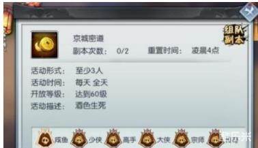点击主界面中的活动按钮,在活动列表中找到京城密道,点击即可参加副本。