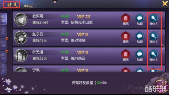 在好友系统里玩家可以相互赠送体力,正所谓一个好汉三个帮,玩家在游戏里朋友越多,每日可以领取体力就越多,作为玩家推关卡的助力节省了不少资源!在这里小编再啰嗦一句,每日一定要记得给好友赠送免费体力哟!