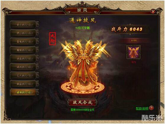 2.2级以上披风可由低一级的披风*3和若干金币合成获得;