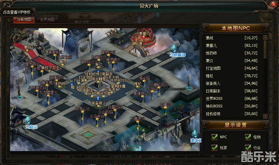 1, 在当前地图中玩家可以查看到当前场景的怪物,NPC