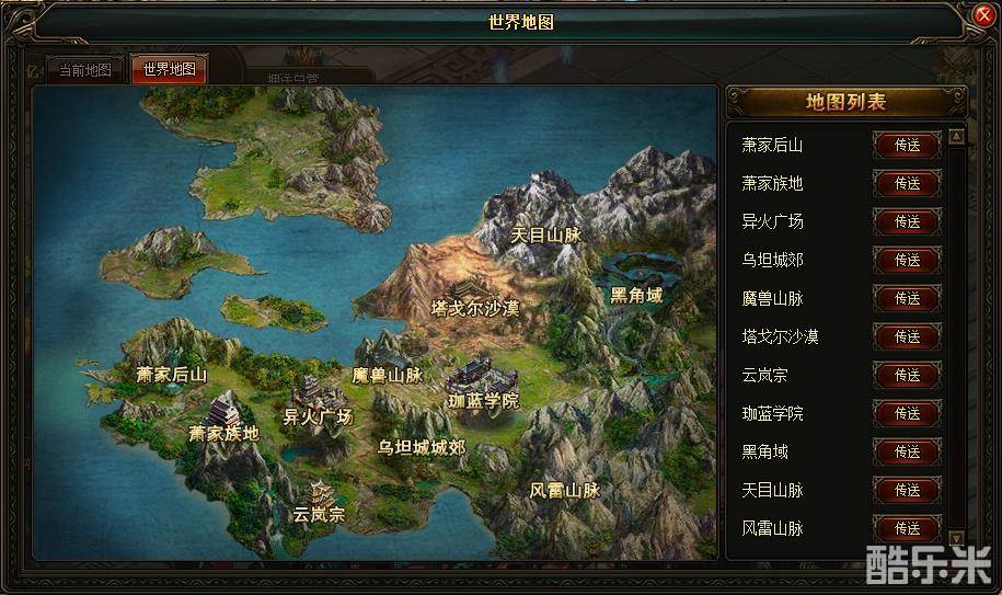 1,在世界地图上,玩家可以查看游戏中的所有地图