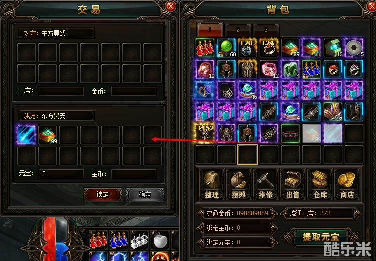 玩家与玩家之间可以直接交易游戏道具、流通元宝和未绑定的金币