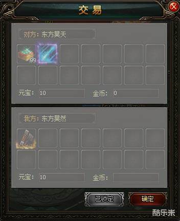 确认交易物品后进行点击锁定,锁定后本次交易内容将无法更改。双方确认无误后点击确定按钮将完成本次交易。