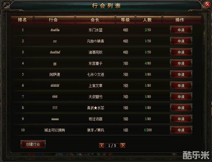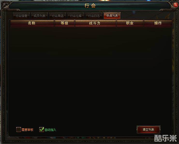 会长,副会长,长老可在此面板进行玩家对行会的申请处理操作。