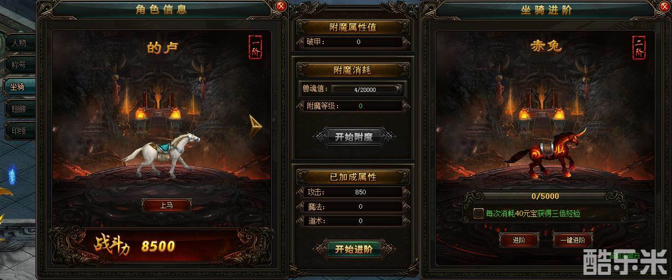 2:坐骑附魔需要消耗兽魂值,当兽魂值达到附魔要求时点击开始附魔即可进行附魔操作