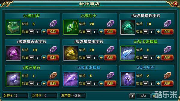 1,封神令及众神令。可在封神商店兑换升级和升星饰品装备的材料;