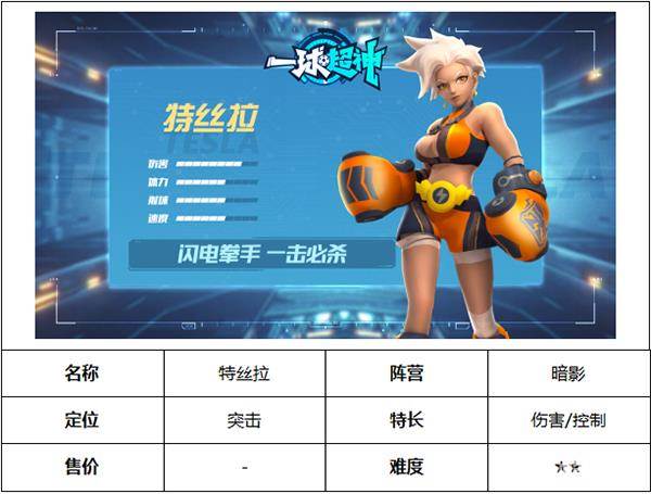 总结下来,作为一名突击型球员,特丝拉将“突”和“击”做到了完美的结合,丰富的技能模块同样赋予了她多种可能,相信特丝拉能够在《一球超神》的赛场上大放异彩,各位参赛者们敬请期待吧!