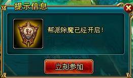 在帮派界面“帮派活动”中进入(帮派等级需≥3级),活动由帮主或副帮主开启,每天可开启一次,帮派除魔活动开启后,帮派成员会收到开启提示。