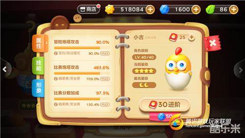 满级的小吉在冒险模式中攻击加成为90%,这个数据可是目前所有萝卜中最高的哦!小吉的技能【吉祥如意】,伤害虽然不高,但是重点在于击晕效果。使用后蛋壳护体,破碎后对周围造成40%血量伤害并眩晕7.0秒,冷却时间为330秒,完全相当于一个炸弹道具哦!并且在所有主题中统统有效。