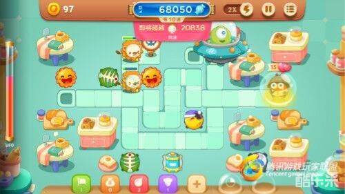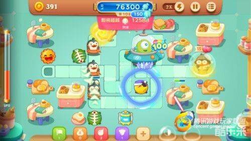 消灭了前几波的怪物之后可以积攒一定数量的金币,在前期阿波建议大家建造一定数量的输出炮塔,鱼刺、多重箭等炮塔都是不错的选择,如果有减速炮塔,也一定要在出怪口及时建造。另外阿波提醒大家,在建造输出炮塔的时候一定要全场均匀分布建造,因为糖果赛每10波怪物会出现一只全场移动的飞碟。