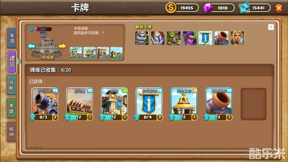 Ø 卡牌出征:军团卡牌、英雄卡牌及魔法卡牌均在卡牌界面中设置出征卡牌,建筑卡牌可在防御界面中摆放。