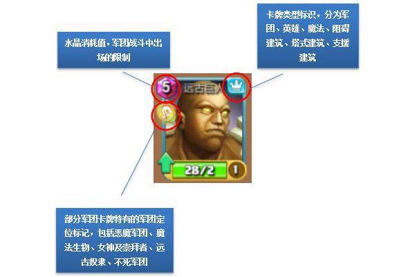 Ø 卡牌数量:游戏中总共有35种军团卡牌,20种防御建筑卡牌,12种魔法卡牌及10种英雄卡牌。