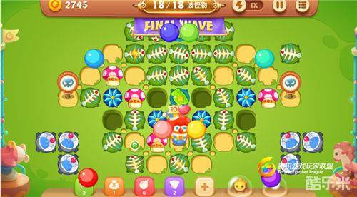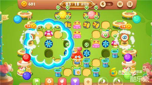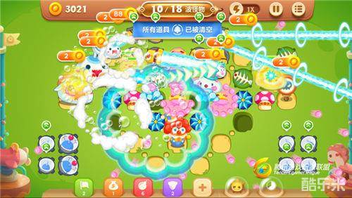 开局后,阿波利用人见人爱花见花开的宠物技能和实力超萌的小丑绝技来清理目标区的障碍物!毒雾笼罩+喷射火焰+缤纷彩球三技连发,能让障碍物呈雪崩式消融!接着,隐身的炮塔会组织成第二防御梯队对漏怪们补刀哟!