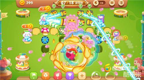 为了增加清理障碍物的能力,阿波增建了4-5座顶级章鱼炮塔,全图漫射的炮弹能让怪兽和障碍物损血严重;为了增加金币的获取能力,增建了3-5座顶级蘑菇炮塔,抢钱减速一举两得!当然,灭怪的主力还要依靠隐藏的炮塔兄弟哟!再增建2-3座鱼刺炮塔来对漏怪们定点补刀,就样就万无一失了。
