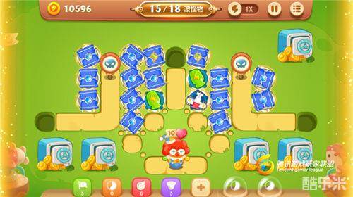 开局后,阿波利用冰锥双向攻击的特性,在路线中心优先建设2-4座顶级冰锥炮塔,从而能对两边出来的怪兽群进行有效灭杀!阿波还能利用火龙果和榴莲的绝技来快速清理中部的障碍物,清理效果也相当不错哒!