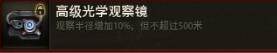 先发制人-高级光学观察镜,这个配件光看属性大家就明白了,增加百分之10的观察距离,而且无论你是否是运动还是静止,对于那些拥有400左右的视野坦克来说,加上这个配件,可谓是雪中送炭啊.尤其像潘兴这种强力侦查车.用了他那威力杠杠的!像是一些高级TD.在使用一档的加速慢慢前进的时候,使用此配件 效果也是不错的说.总之选择炮队镜还是高级光学,根据自己的战车来选择,不同的玩家,(冲锋型,蹲X型)也有不同的选择!