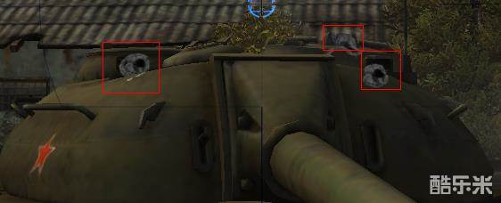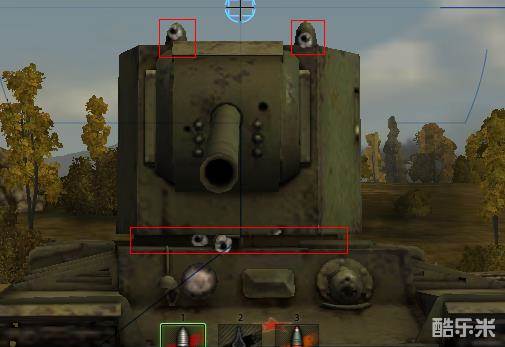 能击穿的地方有:头顶两个观察孔,炮塔座圈