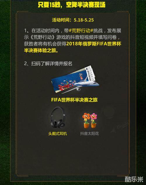 如果你是短视频爱好者,在5月18日至5月25日期间,前往抖音参与#荒野行动#挑战,发布原创展示《荒野行动》游戏的抖音短视频作品,并填写答卷即可报名参赛。