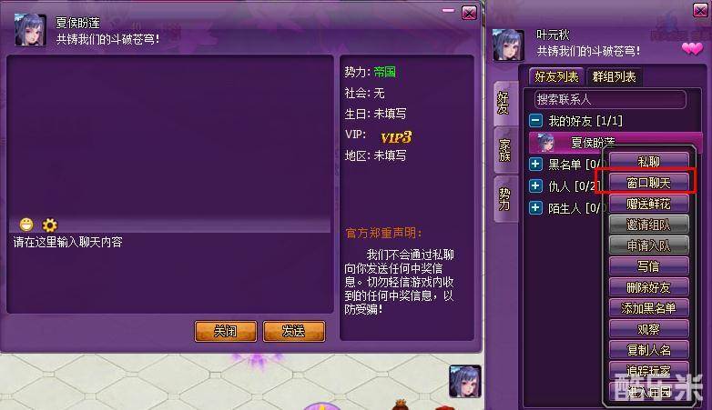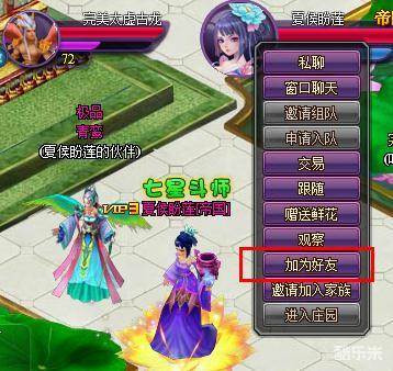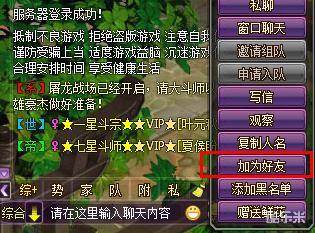 (2)在聊天频道,点击对方角色名,在弹出菜单中选择“加为好友”,发送加为好友请求;