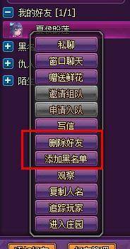 (2)在好友列表,单击好友名称,在弹出菜单选择“添加黑名单”选项,即可把好友加进黑名单。