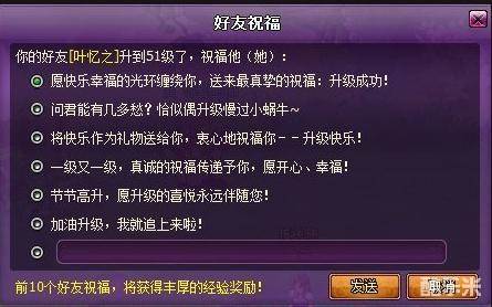 1)最先发送祝福的前10个好友将会获得经验奖励和好友度+2;