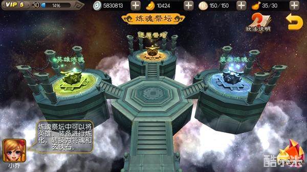 炼魂祭坛可以将英雄、装备进行炼化,转化为将魂和玄铁石,分为炼魂和还原两种祭坛。PS:所有已上阵英雄和装备及宝物不能直接进行炼魂和还原,需卸下后才能进行炼魂和还原。