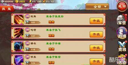 修炼:玩家使用天赋点修炼,使武将获得额外属性加成(武将升级会获得天赋点).