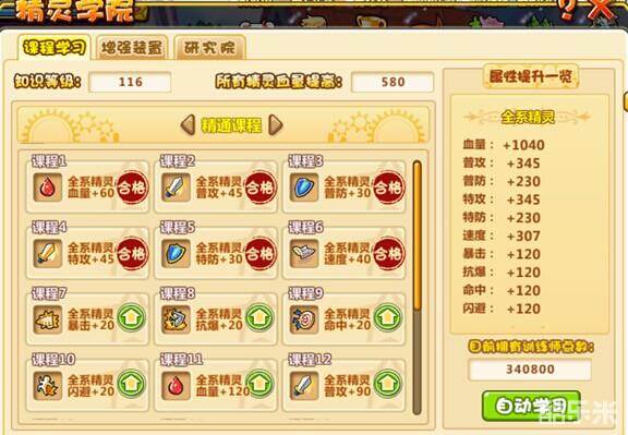 进阶可获得额外属性加成到所有精灵身上