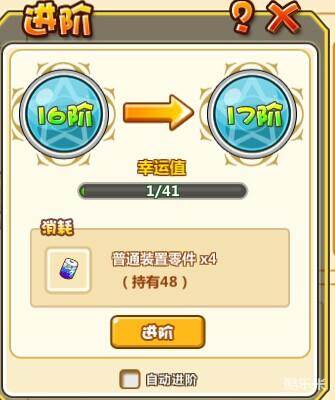②增强装置提升需要消耗普通装置零件,每提升一次获得幸运值,幸运值满或者恰好人品爆发即可进阶