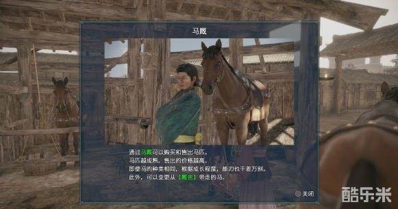 马厩:游戏一开始就拥有默认的马匹可以骑乘,但是没有任何属性。在马厩中可以购买和出售马匹,马匹的升级只有通过多骑乘以及撞击敌人。建议在低级的时候靠冲刺攻击成群的敌人来升级。