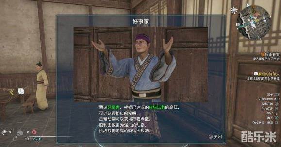 好事家:游戏中狩猎动物后能获得相应的狩猎点数。根据达成的点数能从好事家处获得道具、古币等奖励。