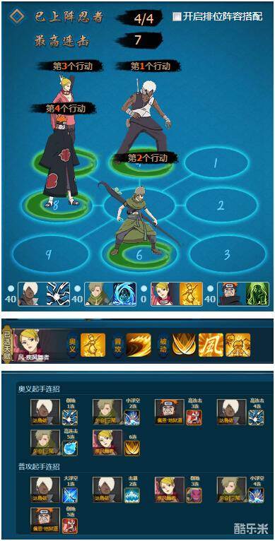 打法分析 主角负责治疗,被动水遁忍者强化,提升十郎的输出能力,主角的治疗量,被动的淬毒有效地配合半藏的技能,十郎每回合造成2次叠毒,每回合至少4层毒,造成成吨的叠加伤害。阵容连招能力优秀,容易触发矢仓以及半藏的追打,输出能力一流。矢仓技能看情况使用,可以选择复制对面结界忍者,增加输出我方输出或破解对面结界,我复制对方强力忍者,以对面阵容基本情况, 风主阵容推荐