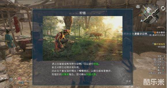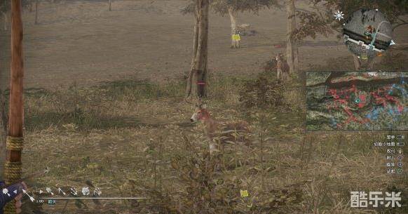 狩猎系统:通过猎杀鹿、狼、虎等动物可以获得素材和狩猎点数,素才可以进行烹饪和开发,狩猎点数可以向好事者报告兑换道具、古币等。玩家可以选择用弓偷偷射击击杀猎物或者直接冲过去开无双,持弓状态下再按△可以变为第一人称射击模式。