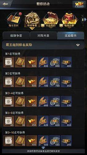 以上就是本次群雄争霸活动的介绍与解析了,本次活动中的奖励也十分丰厚,将会根据参与活动的主公的段位和名次发放奖励,包括技能图纸碎片、资源、元宝、天赋经验书等等好礼。中原逐鹿,谁能问鼎巅峰?让我们拭目以待!
