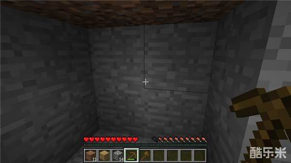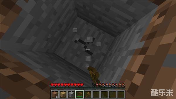 使用木镐向下挖石头