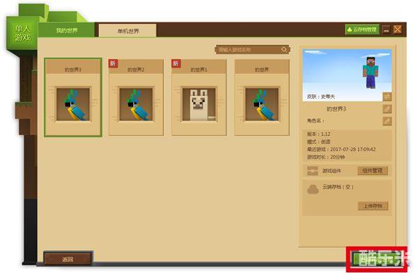 创建单人游戏有两种方式,在启动器中直接创建或导入本地地图。