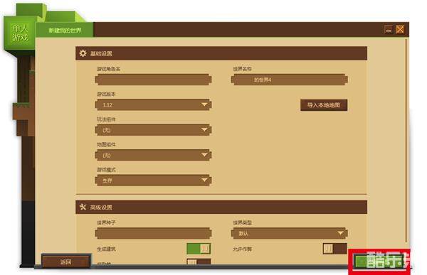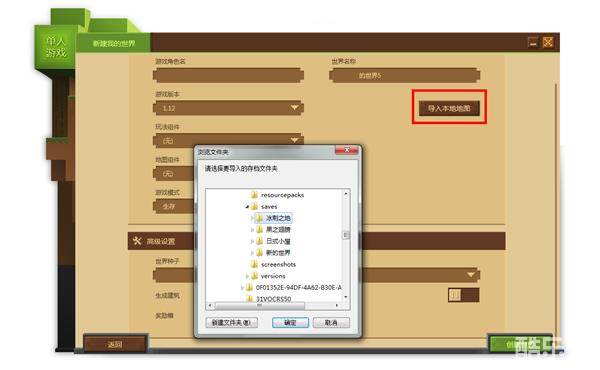 ①在【新建我的世界】界面,点击【导入本地地图】按键。
