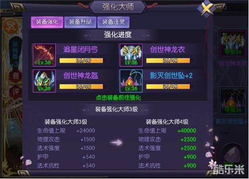 装备的强化等级同样不能超过武将自身等级上限,装备强化只需要消耗铜币即可。在装备强化到一定等级之后,消耗对应位置的装备制作图和锻造丹就能对装备进行进阶,进阶一定等级后的装备颜色会发生变化,从白色到橙色依次递增。当装备进阶到紫色的时候开启装备注灵,会进一步强化装备的属性。