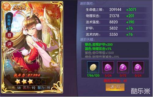 武将进阶可以直接提升自身的属性,消耗进阶石和不同等级的宝石就可以完成武将的进阶。进阶后的武将颜色也会从白色到橙色递增。而且武将的进阶天赋也将解锁,在基础属性的提升下进一步提高武将的特殊属性,让武将战力飙升。