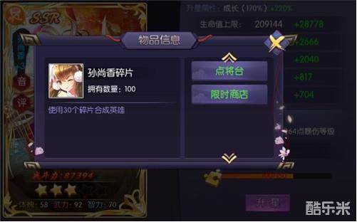 武将升星不仅可以解锁不同星级的武将技能,还能大幅度的提升武将的基础属性,这是提升武将战斗属性最关键的地方,武将升星只需要同种武将碎片即可,我们可以通过点将台和商店刷新、每日签到获得所需武将的碎片,完成升星。升星后的武将会解锁主动技能和被动技能,在战斗中的表现才会得到最完美的发挥。