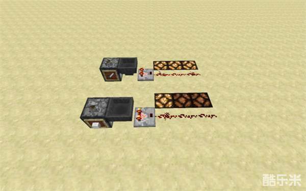 从一中的装置我们知道了比较器输出的信号强度会在1和3之间切换,因此我们可以将其改造成输出0和1的装置,即在比较器后三格处放一个红石灯,这样如果比较器输出的信号强度为3,那么红石灯亮,如果输出强度为1则红石灯灭。