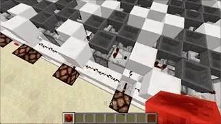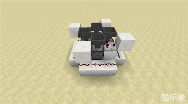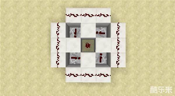 第一步:建造第一层,如下图所示,放置红石和红石中继器,注意中继器的方向,当中继器被激活时中间的四个完整方块和红石将被充能。
