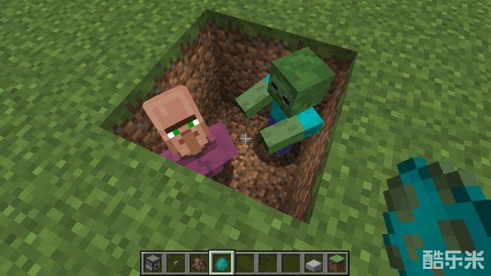 我的世界原版生存中让村民对抗僵尸的技巧,使用原版1.12.2,无Forge无Optifine,然后准备发射器,按钮,村民蛋,一套荆棘装备,僵尸在攻击村民的时候受到了伤害,最后村民把僵尸干死了!