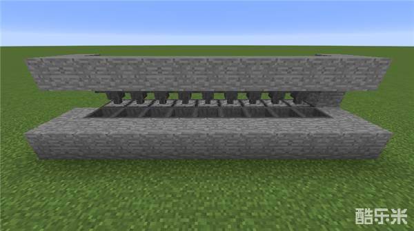 第五步:如图所示,在前后分别放置方块为铺铁轨做准备。