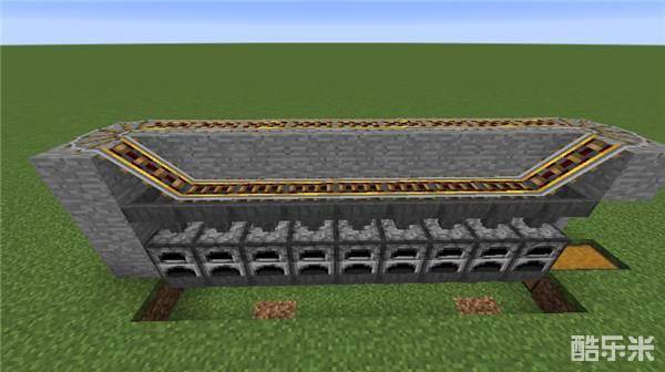 所以接下来要介绍的就是一个可以节约很多时间的矿车高速熔炉,这个装置主要是利用了运输矿车能够往所经过的漏斗里平均放物品这个特性为原理制作的。这个熔炉主要的优点是,不管熔炉的数量是多少,原材料和燃料都只需要放置一次,大大提高了效率。