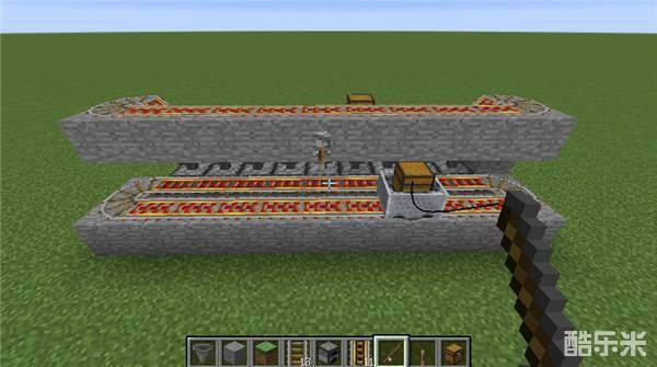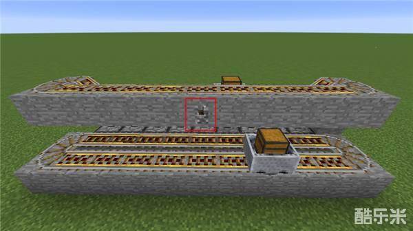 最后一步:在两条铁轨上各放置一个运输矿车,并在图中红框的位置放上一个拉杆,启动拉杆后,充能铁轨被激活。