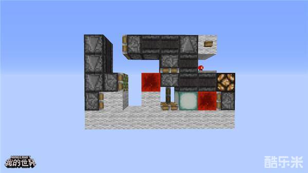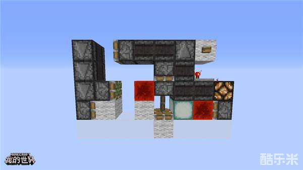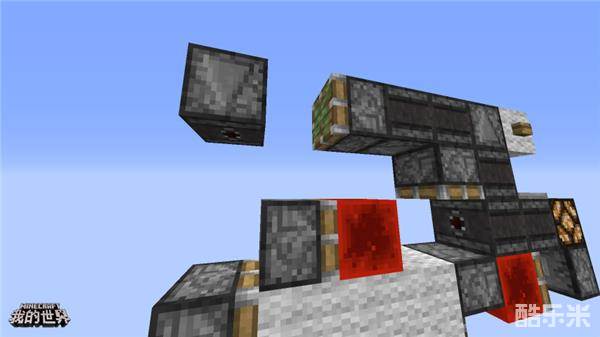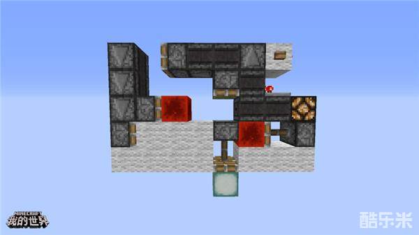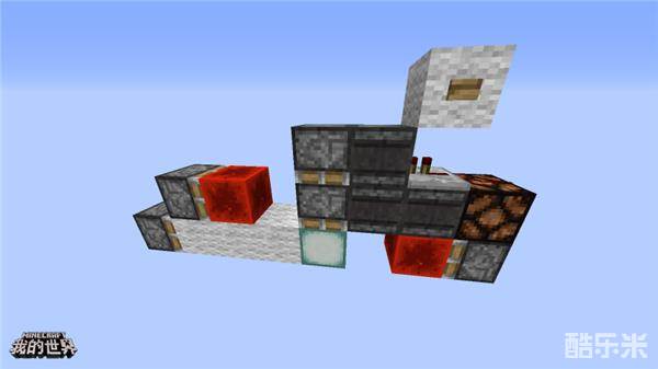 最后放置两个向下的侦测器,用于激活左下角的活塞,将墙面方块右推