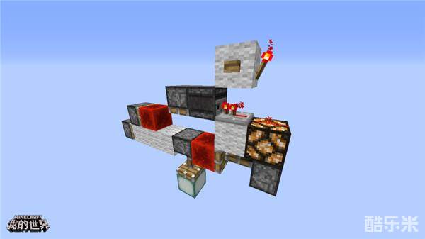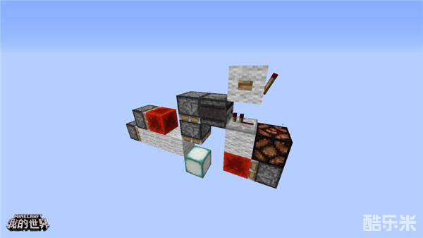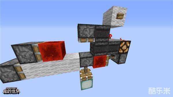 如图放置两个向左的侦测器,检测红石灯的变化,用于完成最后一步收回