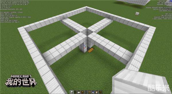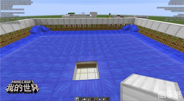 第四步:将中间挖出一个2*2的坑,这样刚好铁傀儡可以通过,然后在洞的周围放置告示牌用来阻挡水流。