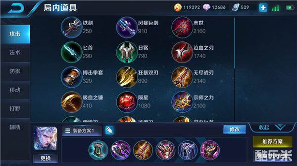 暗影战斧作为综合性装备,能够增强铠的前期作战能力,暗影战斧能为铠提供最大生命值的加成,一定的技能冷却缩减属性,还使铠的穿透能力在前期有一定的提升,另外,被动效果还能增强铠的留人能力。无尽战刃可以增强铠的暴击能力,使铠的伤害得到很高的提升。铠在使用二技能后可衔接普攻对敌人造成高额伤害。